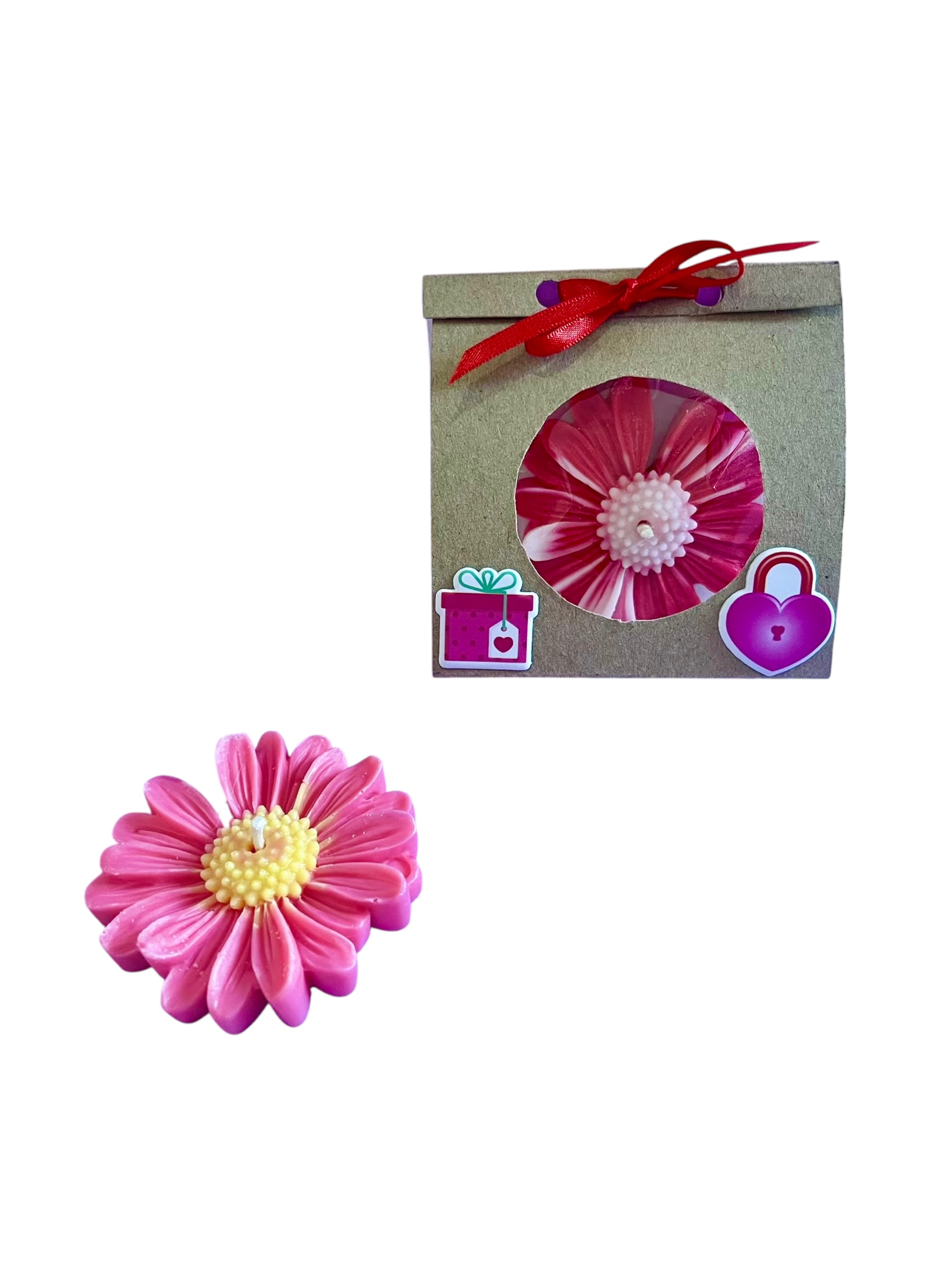 Elaborada artesanalmente en forma de flor y perfumada con un dulce aroma a cereza, esta pieza es ideal como obsequio pequeño, recuerdo especial o complemento de regalo.