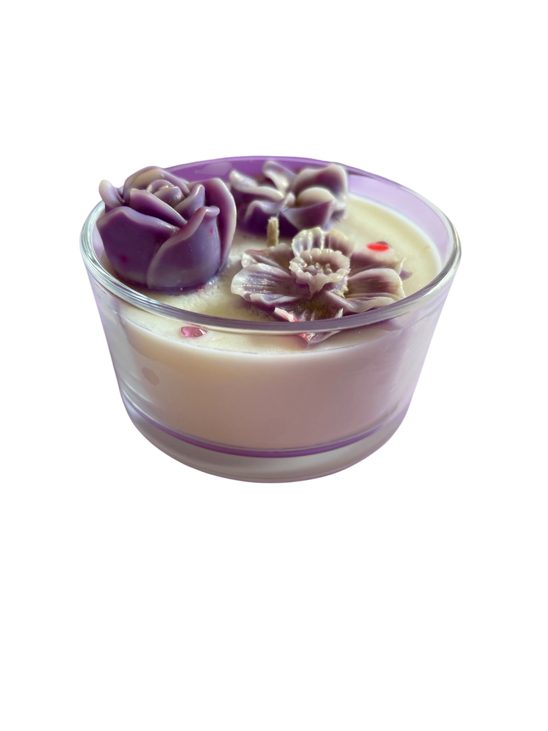 Decorada con diferentes flores moldeadas en cera, esta pieza transmite romanticismo y frescura, creando una atmósfera armoniosa y sofisticada en cualquier espacio.